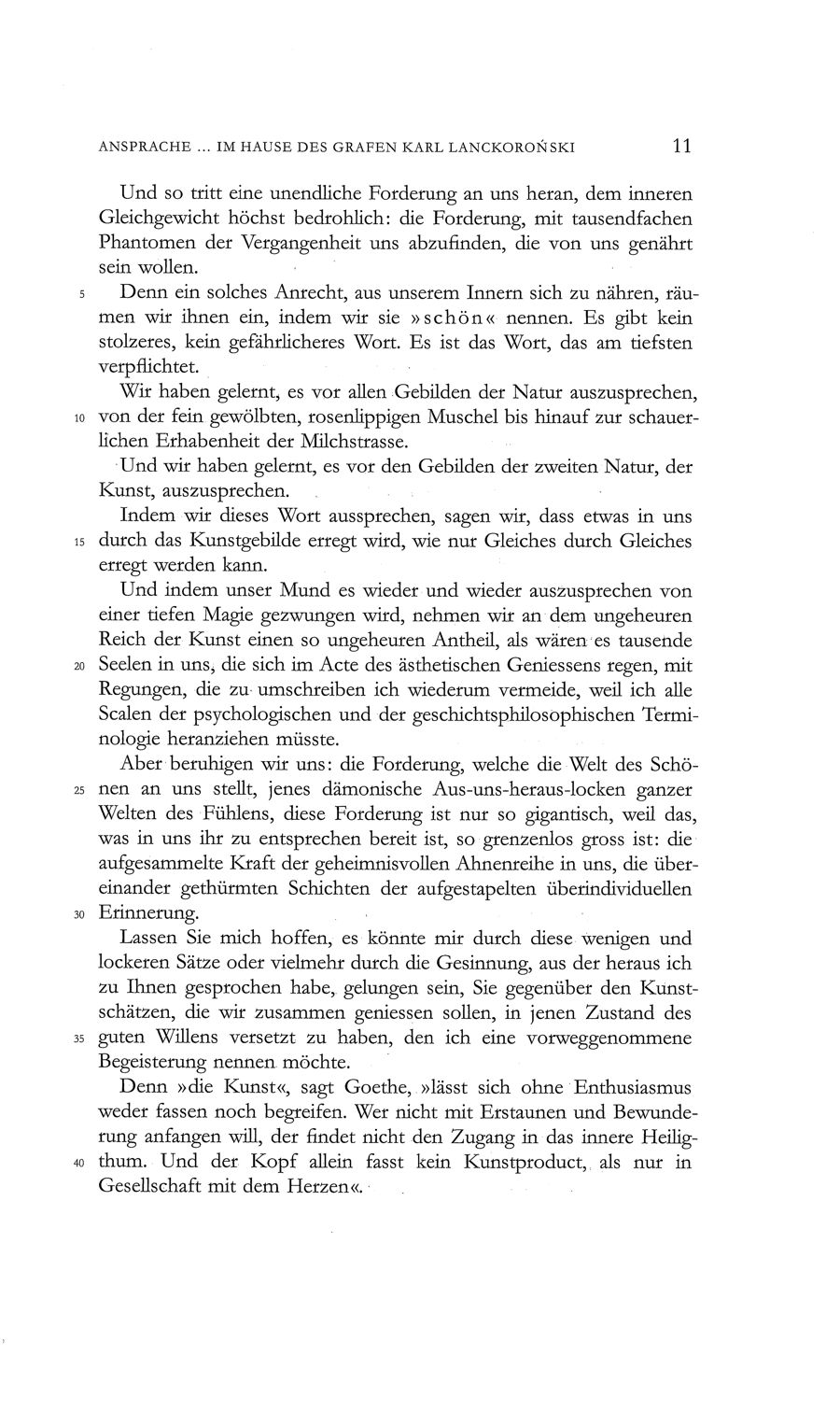 Band XXXIII Reden und Aufsätze 2 1902–1909 / Textteil / Ansprache gehalten von Hugo von Hofmannsthal ... im Hause des Grafen Karl Lanckoroński, S. 11 Merkliste Die Merkliste ist leer. Sie können die aktuelle Seite hinzufügen, indem Sie auf das Symbol klicken.